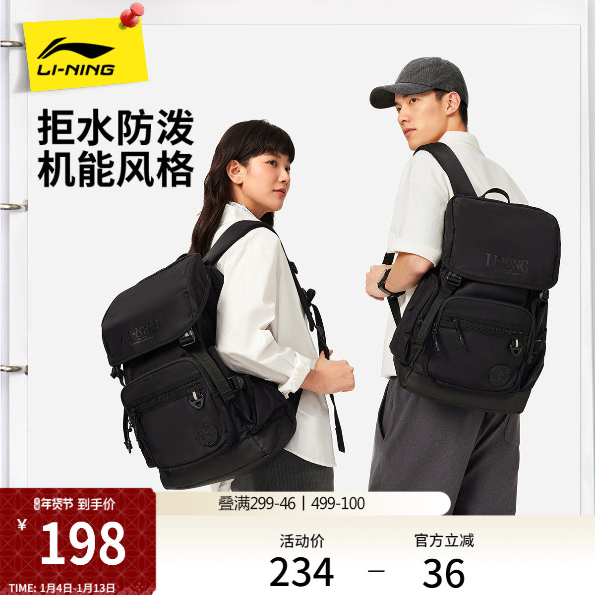 李宁双肩包男女士2026新款官方正品运动出行背包学生书包运动包