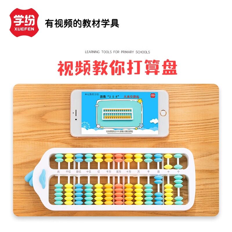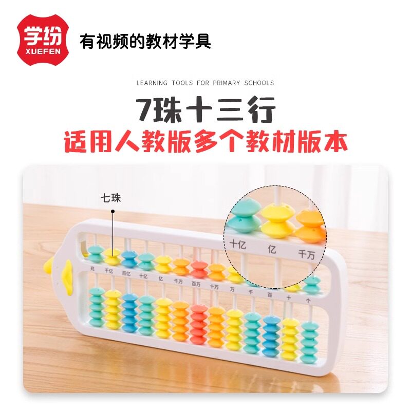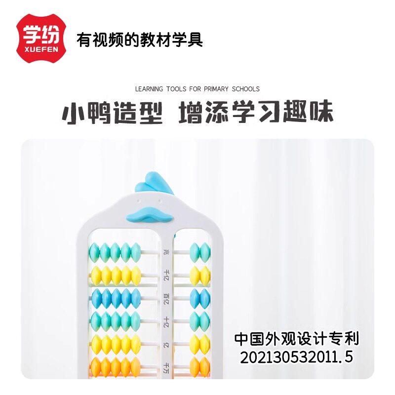 学纷十三行清零算盘可爱小鸭子造型2-4年级教材专用7珠13行珠心算计数器一键清零数学算数运算学习加减法学具