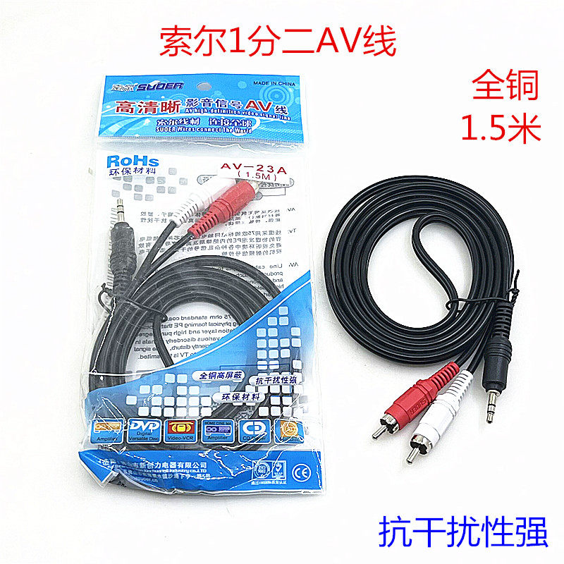 索尔影音信号AV线连接线6头AV线网络电视机顶盒3.5mm一分三AV线