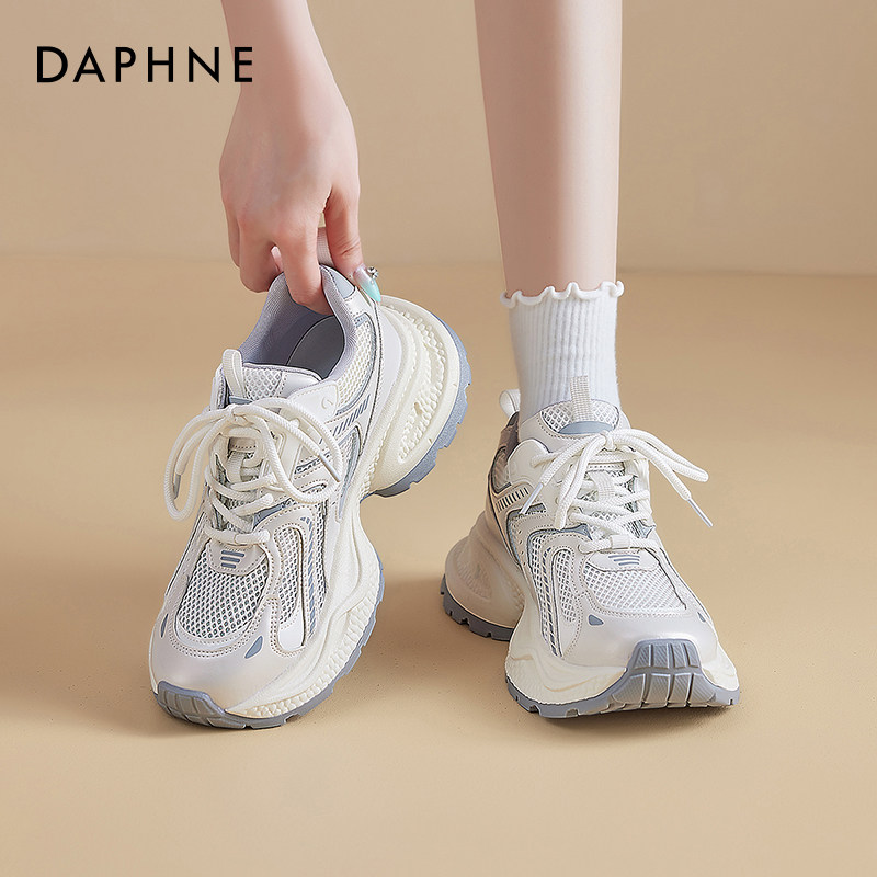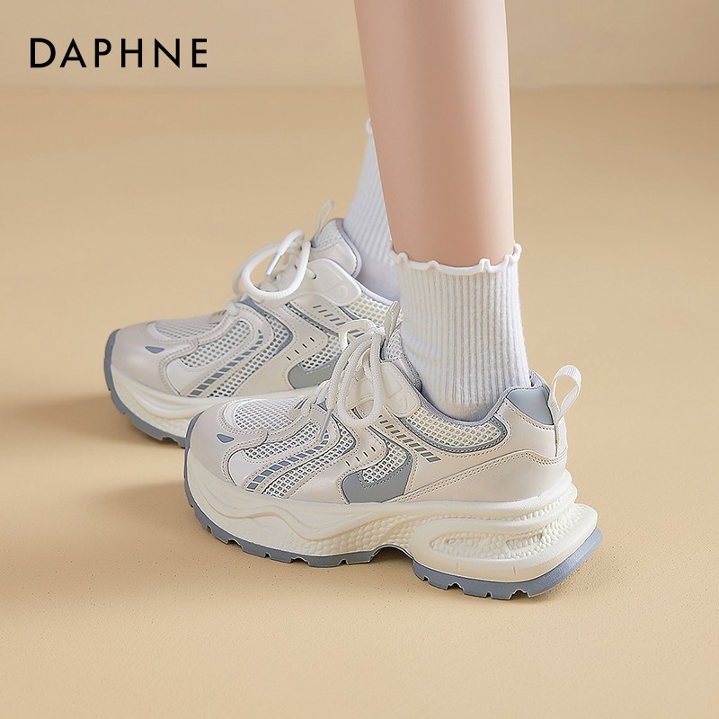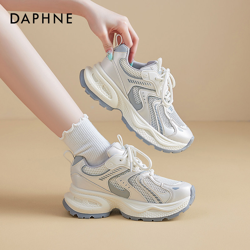 达芙妮白色老爹鞋女2026新款春季超火网鞋女透气网面厚底运动鞋子