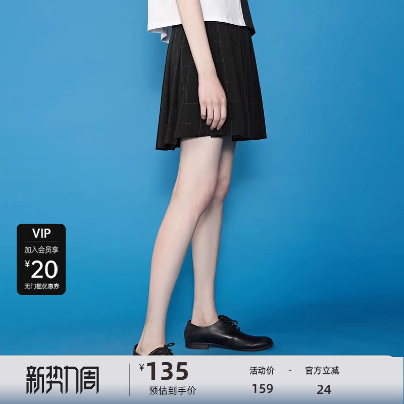 sdeer圣迪奥女休闲高腰撞色格纹A字百褶短裙S20261306