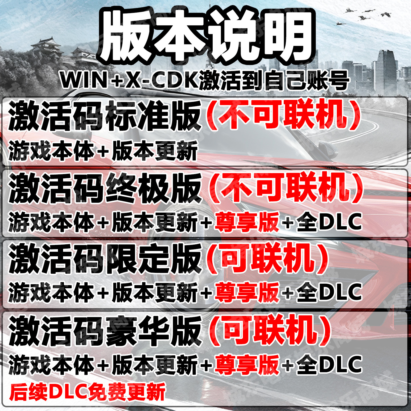 极限竞速地平线6游戏STEAM激活码CDK全DLC入库多人在线联机全球区