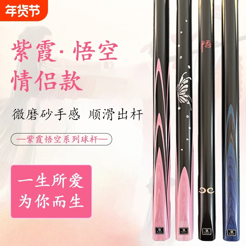 悟空紫霞台球杆小头热销榜中式黑八男女生枪手球房公冲一体桌球杆