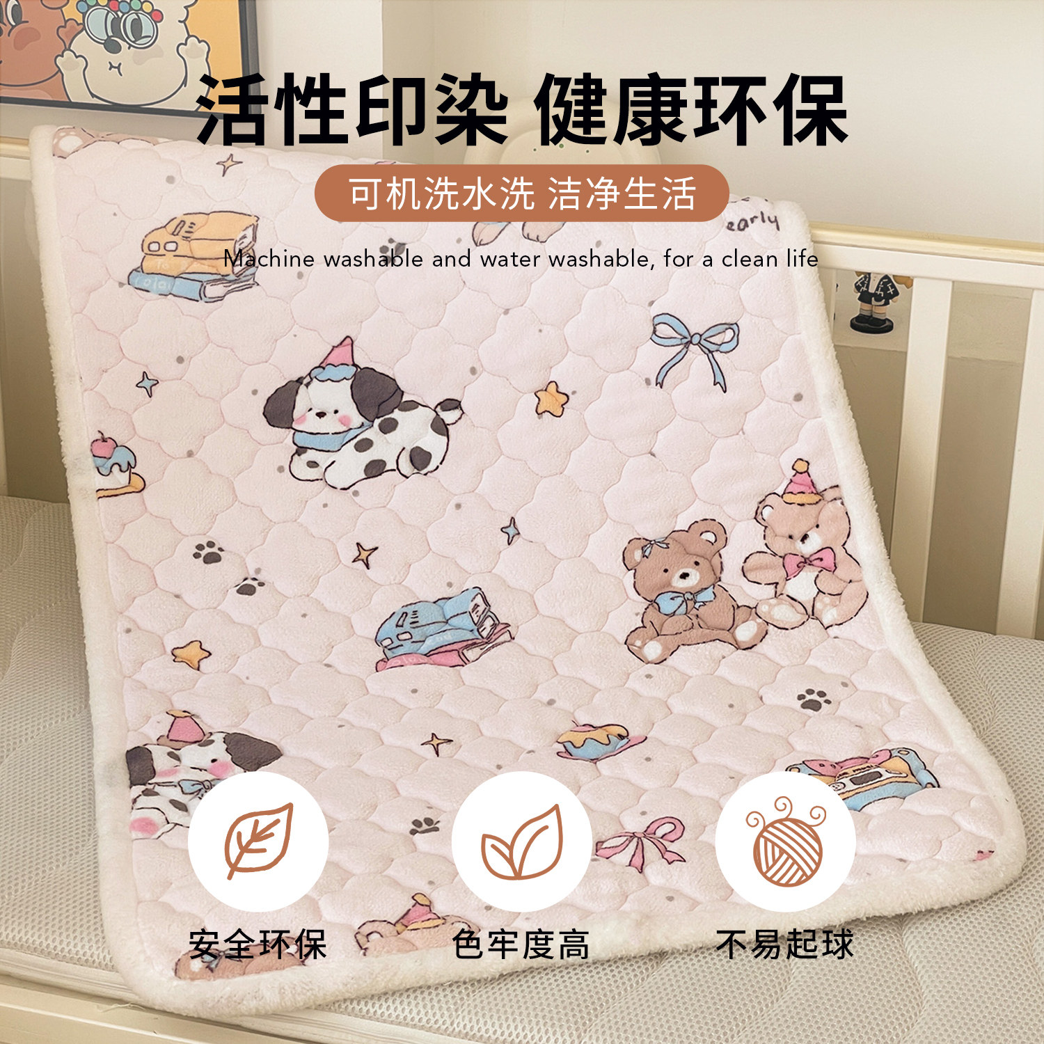 秋冬款牛奶绒婴儿床垫可爱卡通幼儿园夹棉床褥儿童防滑床护垫