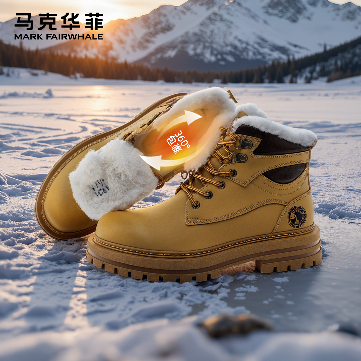 马克华菲雪地靴男冬季新款皮毛一体防寒靴子男士加绒加厚保暖棉鞋