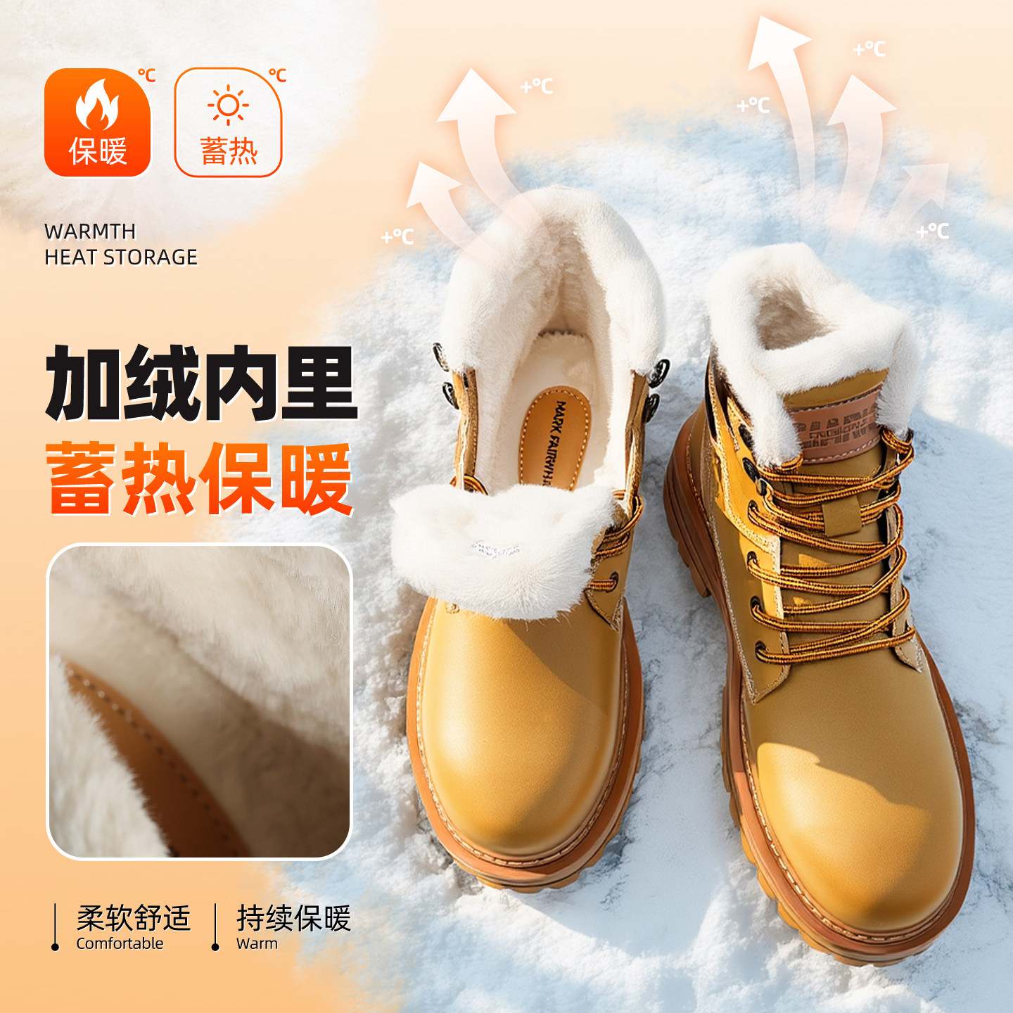 悍途加绒保暖棉鞋男士新款冬季厚底加厚防水男鞋东北运动雪地靴女