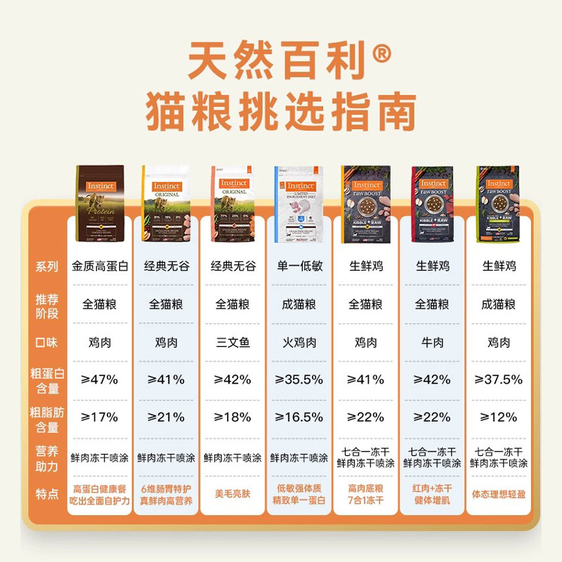 部分临期[官方旗舰店]Instinct天然百利猫粮无谷鸡肉高蛋白猫粮