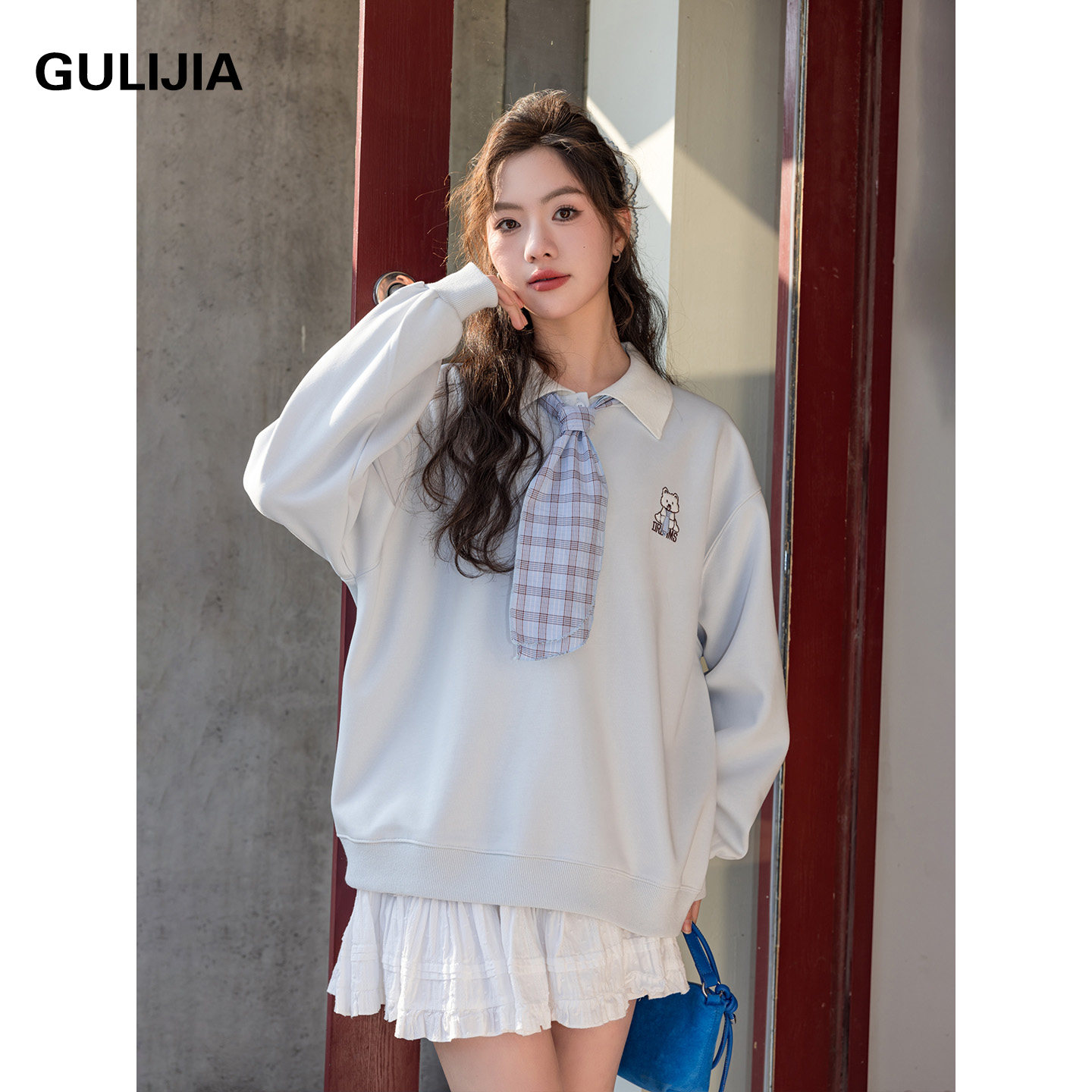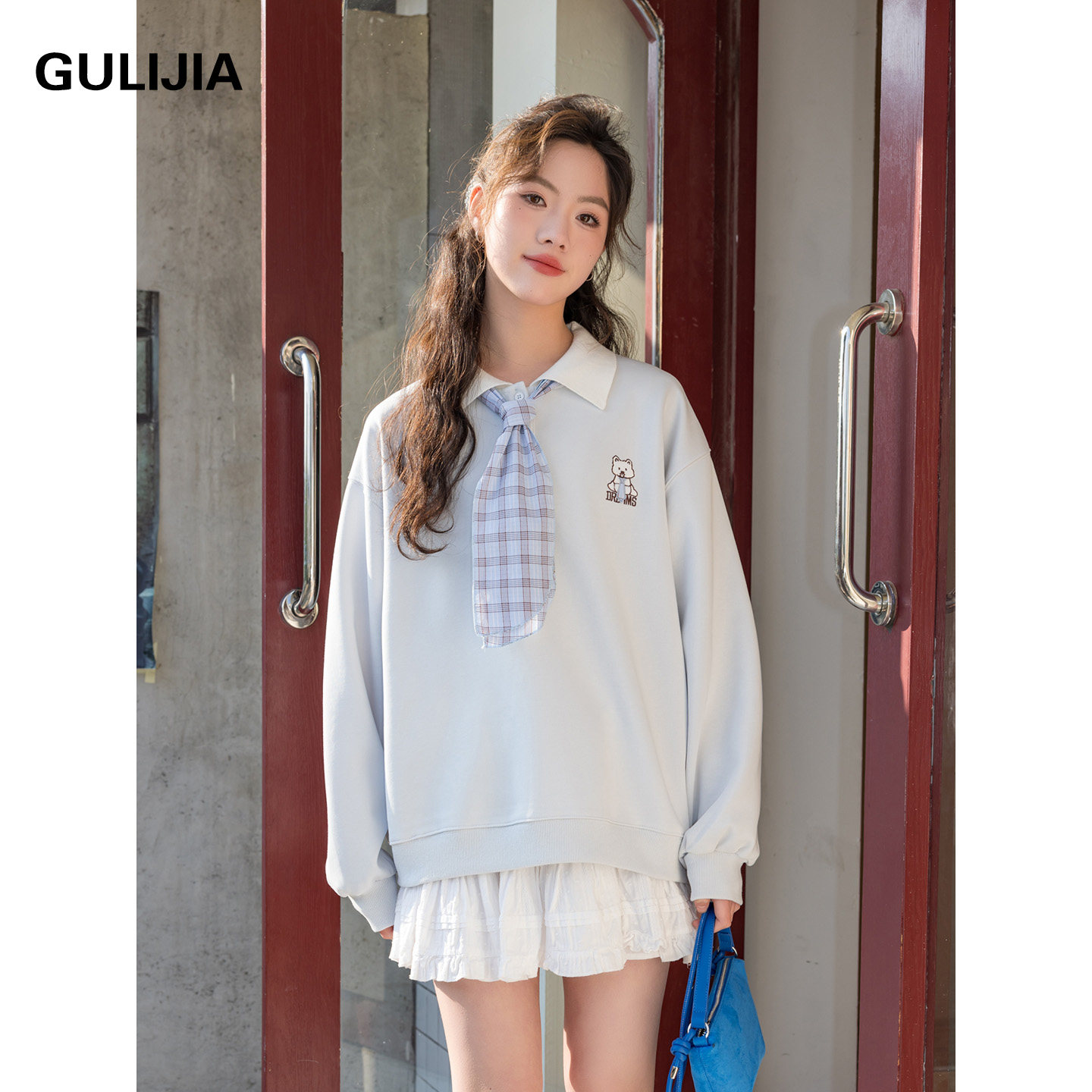 古力家春秋款学院风假两件领带卫衣女大童2026新款甜美百搭上衣