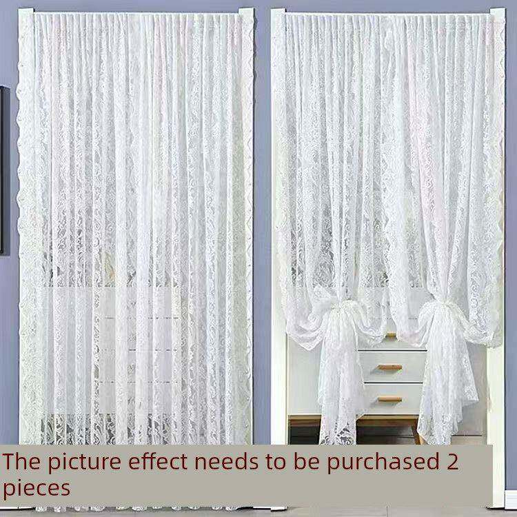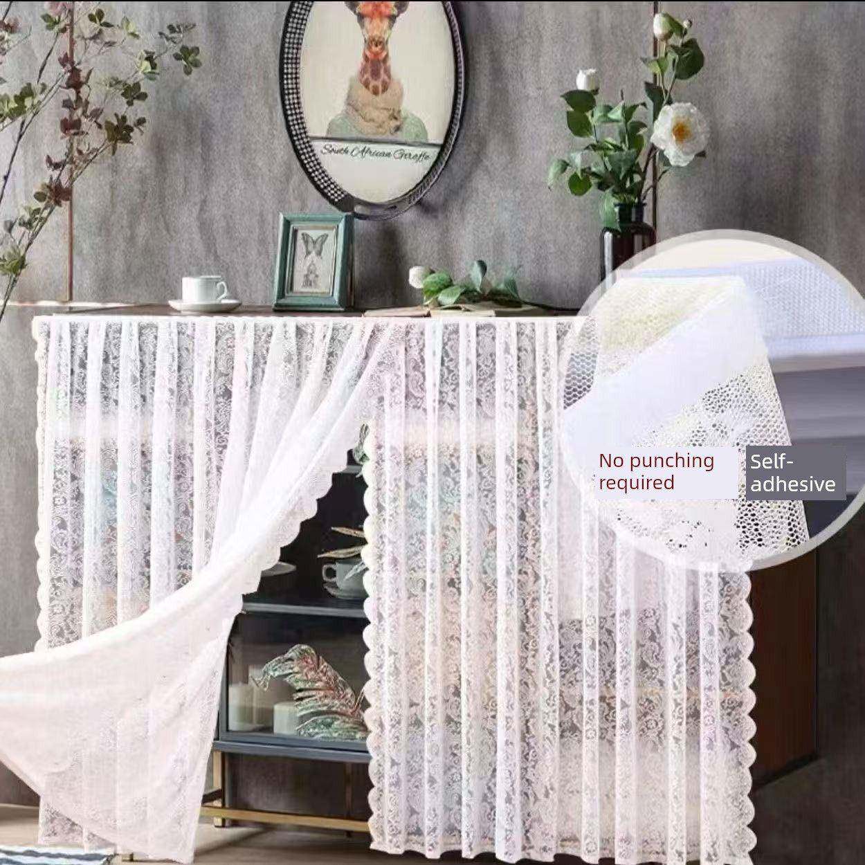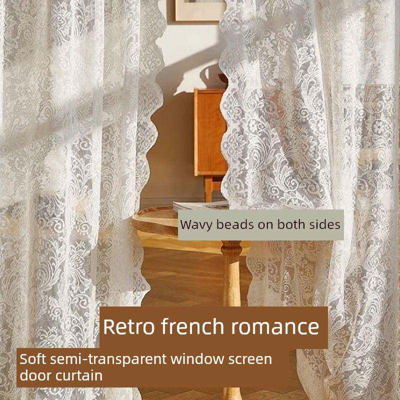 纱帘飘窗开窗钉珠法式覆古魔术贴免遮挡打孔蕾丝田园窗帘门帘隔断