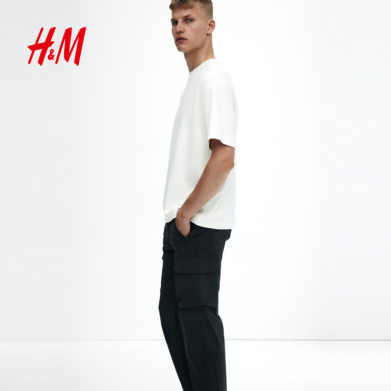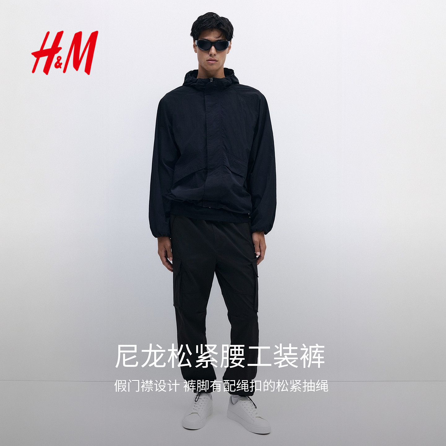 HM男装休闲裤春季尼龙松紧腰美式时尚舒适工装裤1288986