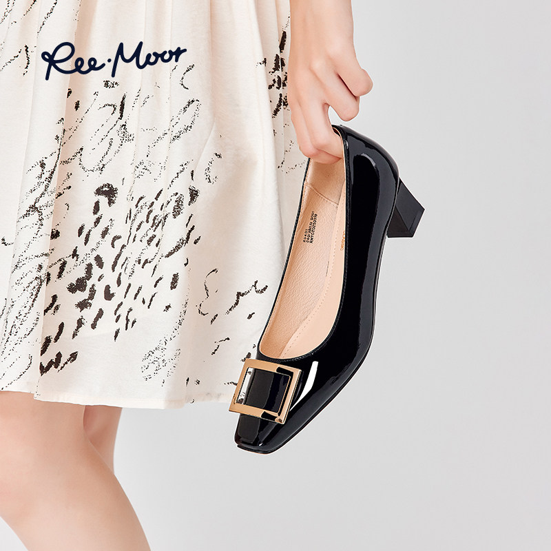REEMOOR睿慕2025年秋季新款方扣简约高跟鞋通勤百搭浅口单鞋女鞋