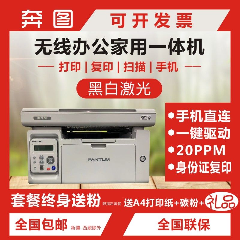 奔图M6202W黑白激光一体机 打印复印扫描 无线WIFI家用办公打印