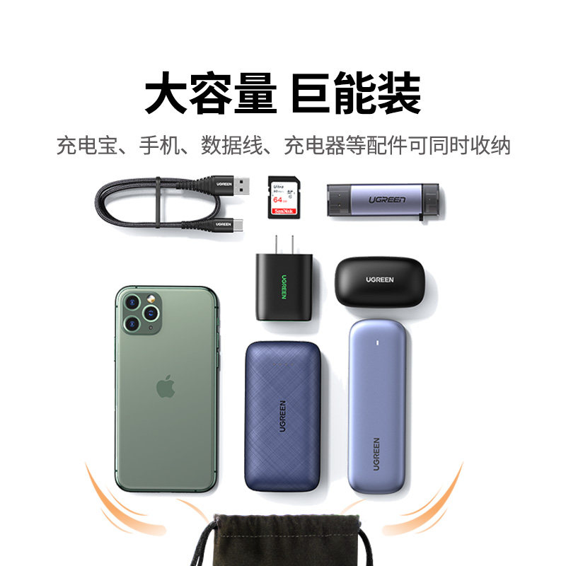 绿联数据线收纳袋充电宝收纳包充电器耳机u盘移动硬盘保护套移动电源手机数码周边抽绳束口袋随身迷你绒布袋