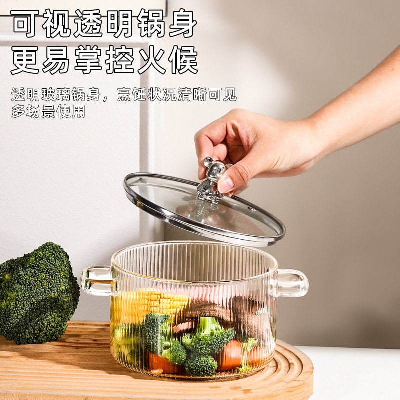 加厚高硼硅玻璃锅可爱小熊家用厨具辅食煲汤炖锅双耳泡面碗牛奶锅
