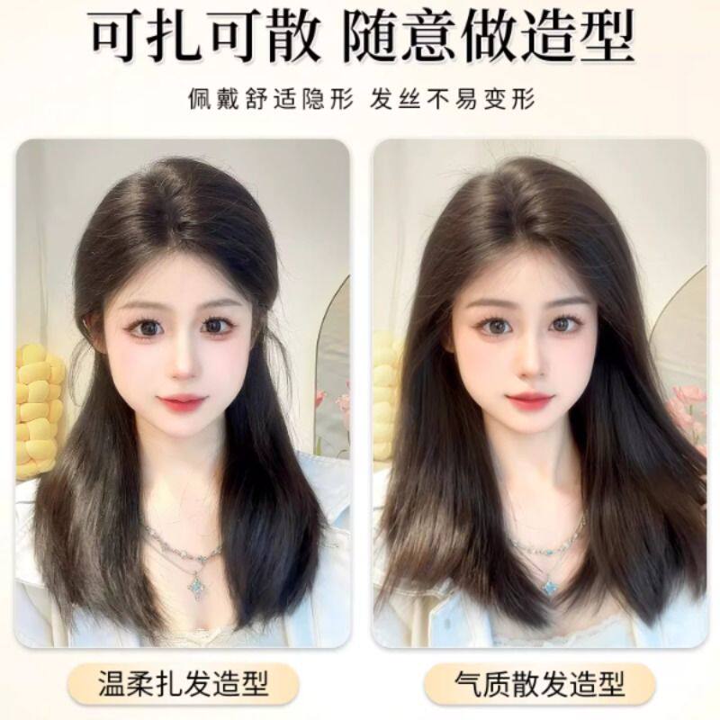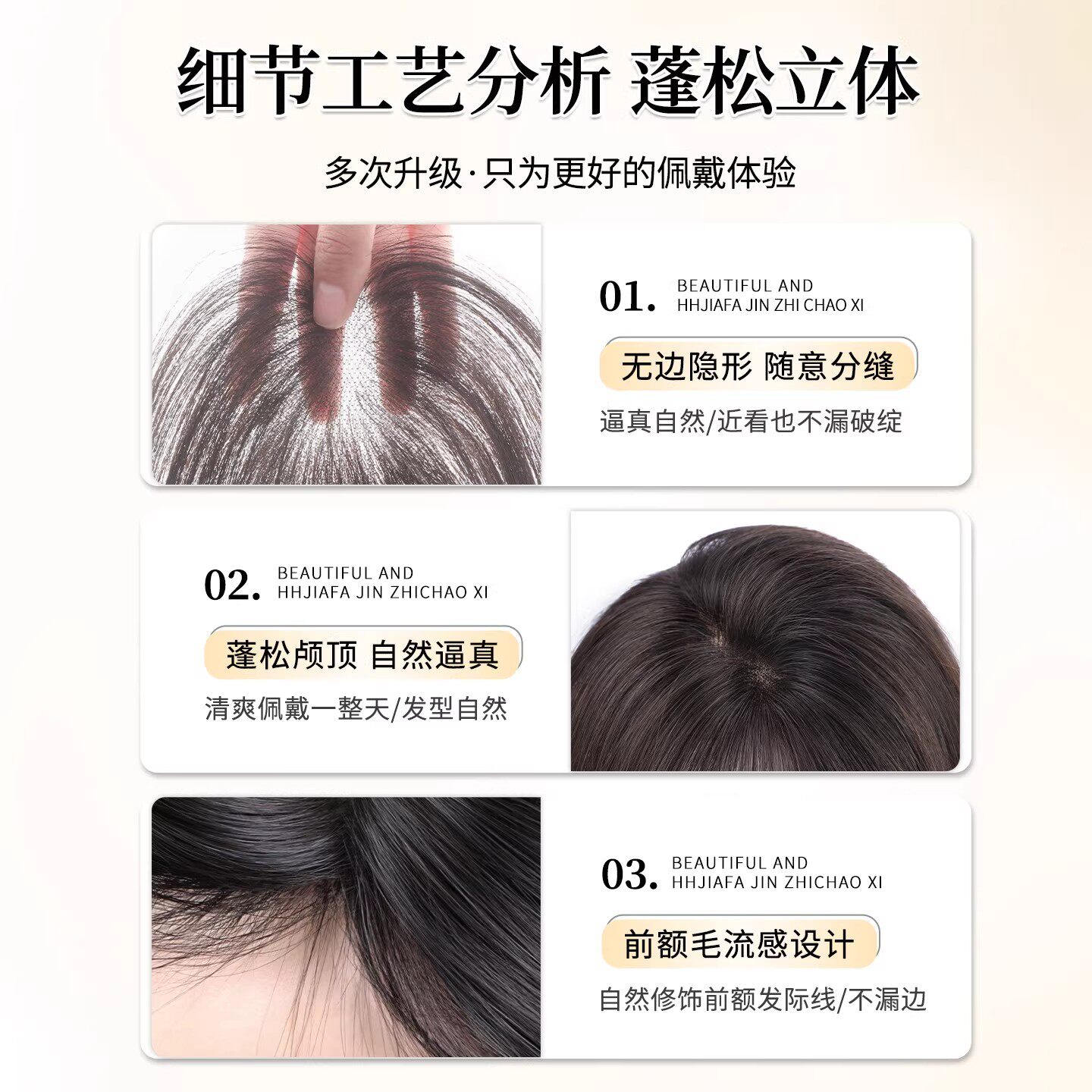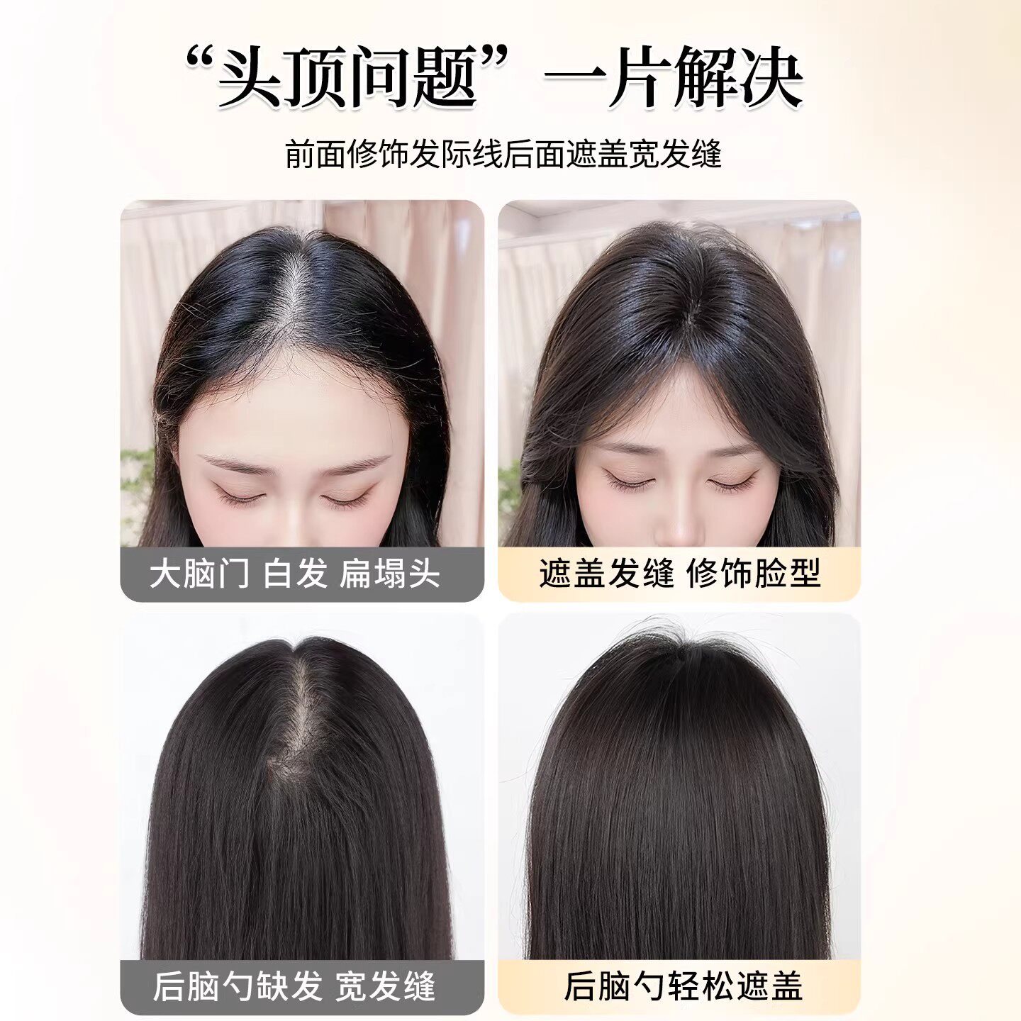 假发女片头顶真发遮白发前额增发量蓬松高颅顶刘海无痕补发片八字