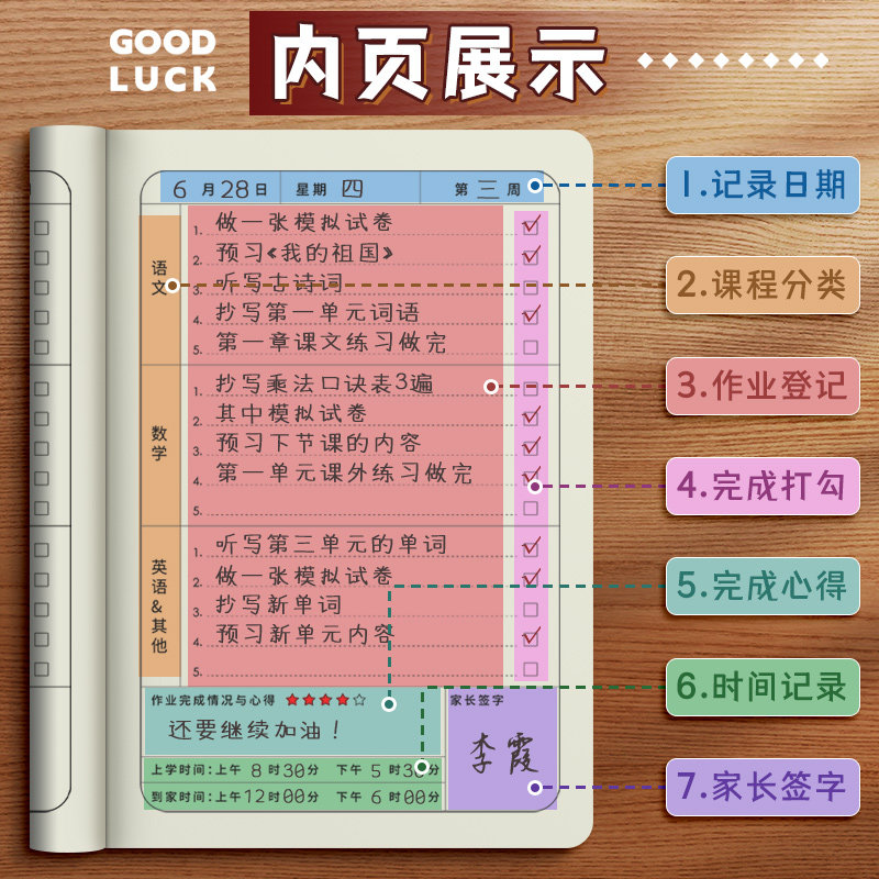 A5作业登记本彩色励志文字小学生专用记录本二三四一年级通用课堂抄写家校联系高颜值初中生记作业备忘小本子