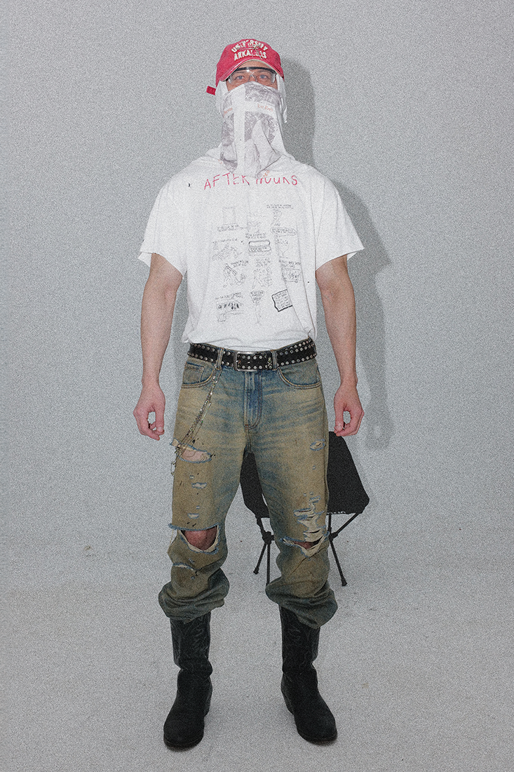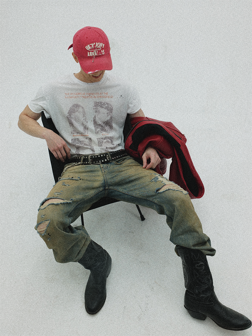 LR MADE 24AW 侧缝立体弯刀 前后喷马骝 水洗做旧廓形牛仔长裤