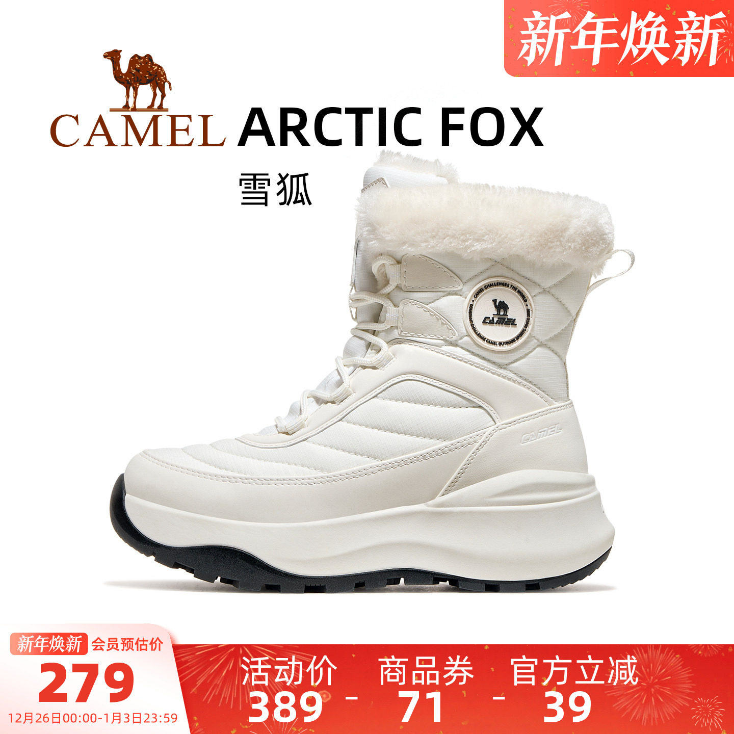 骆驼雪狐运动鞋女款2025秋冬季棉鞋高帮女鞋防滑防泼水保暖雪地靴