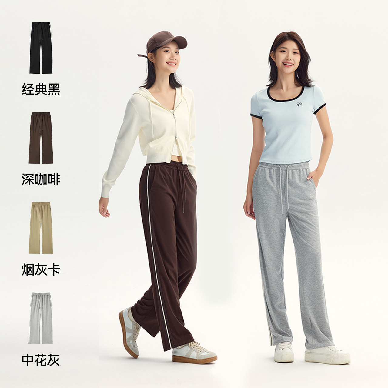 SIINSIIN加绒卫裤女2025新款阔腿运动裤休闲长裤冬季白色直筒裤子