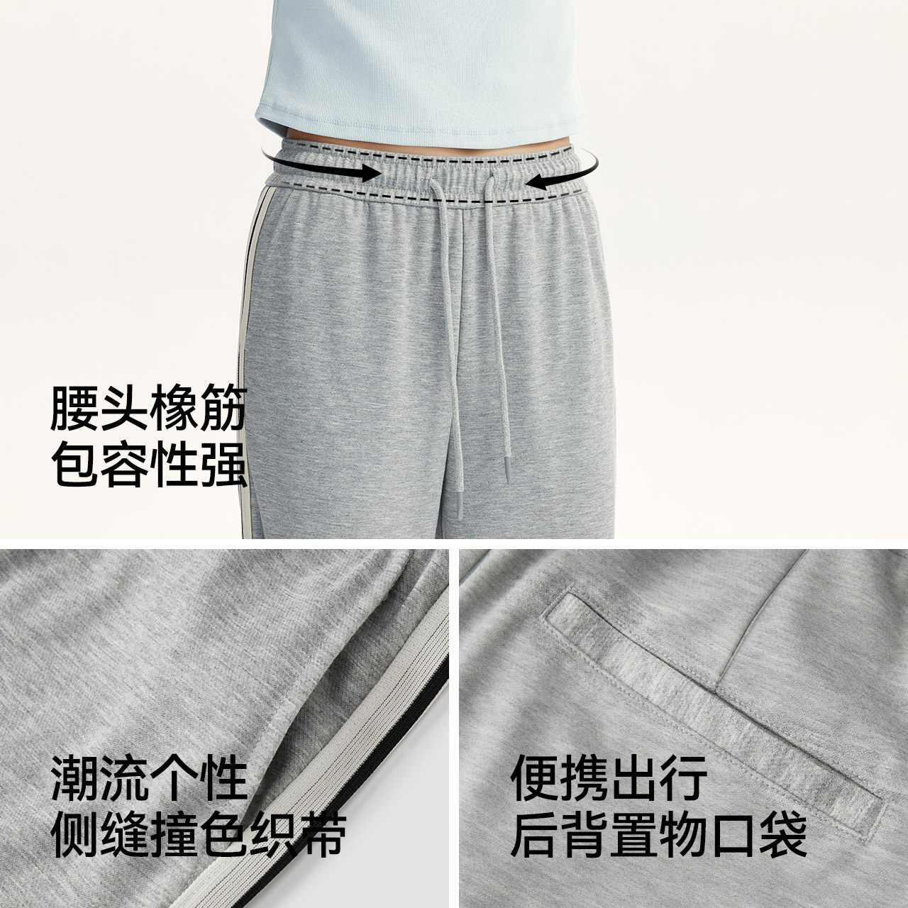 多色选 运动风撞色侧边条 脚口内抽一裤两穿