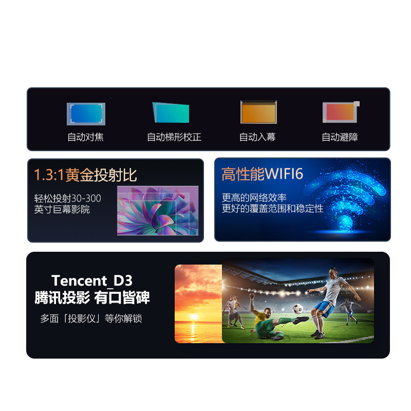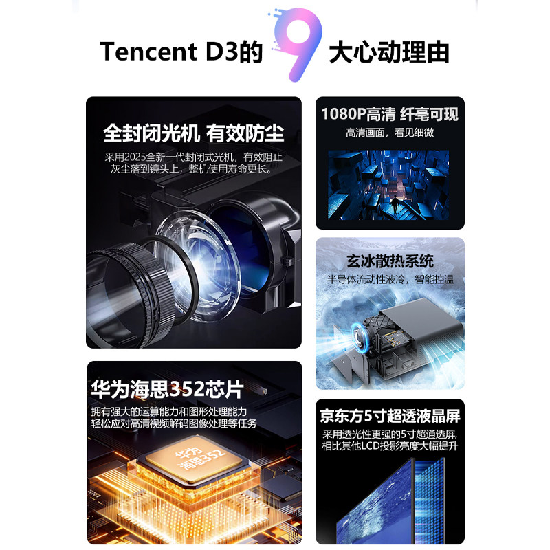 腾讯极光投影仪D3 家用智能投影机腾讯d3水冷散热客厅房间白天高清高亮投影电视机移动便携家庭影院 政府补贴