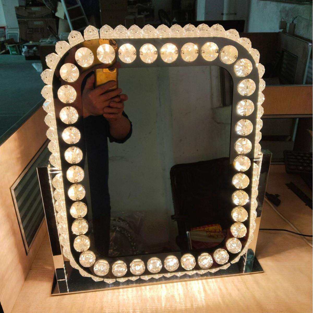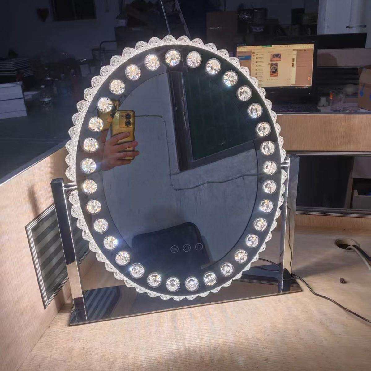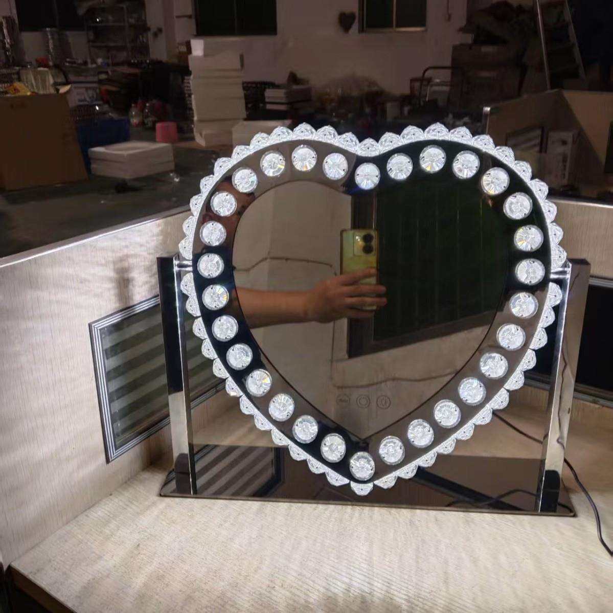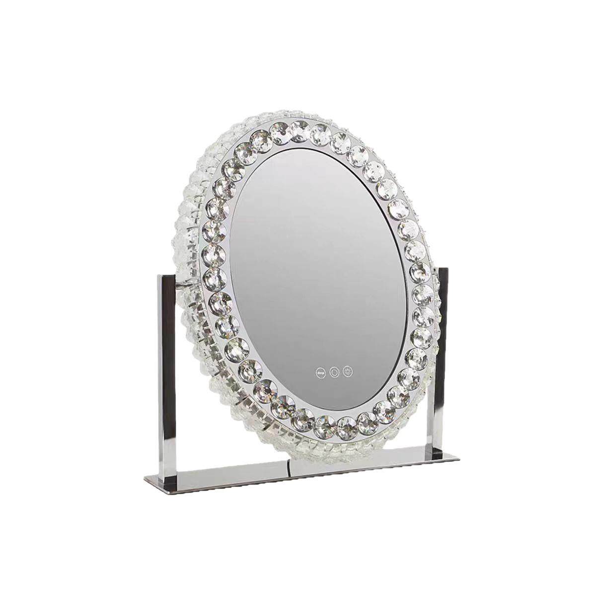 欧美led水晶化妆镜跨境梳妆镜台式轻奢不锈钢补光镜旋转法式智能