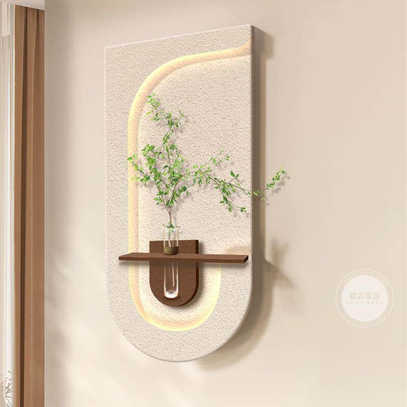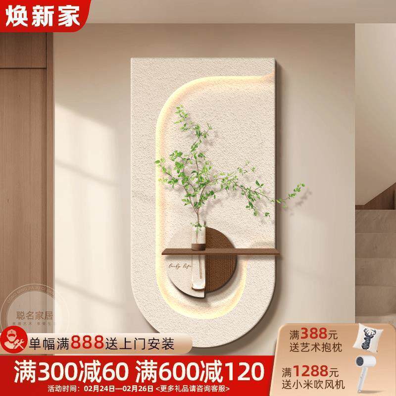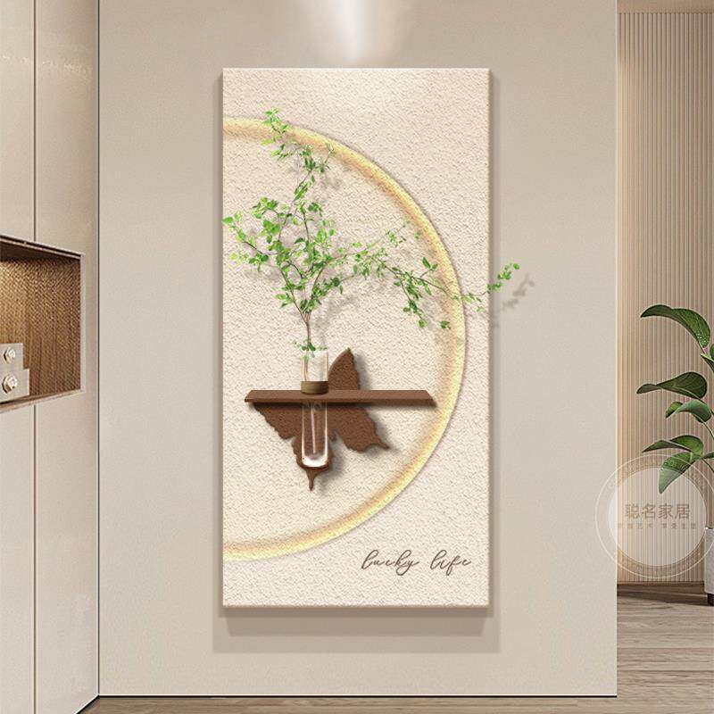 奶油风可水培绿植玄关装饰画立体砂岩走廊过道挂画入户客厅壁灯画