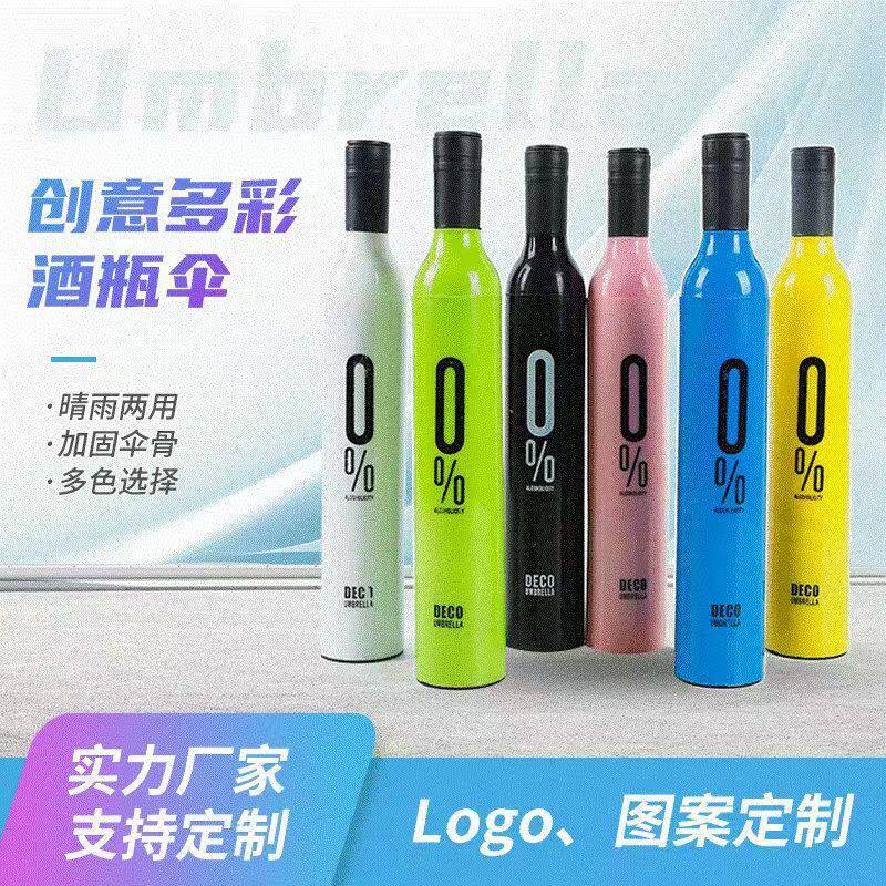 酒瓶伞酒瓶折叠加印logo花瓶伞雨伞加固便携手动黑色白色手柄绿色