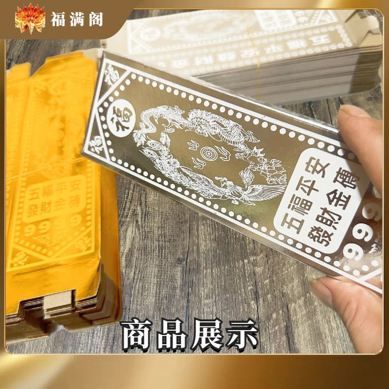 精品加厚五福金砖半成品金条大号银砖清明免粘银条高亮硬卡纸包邮