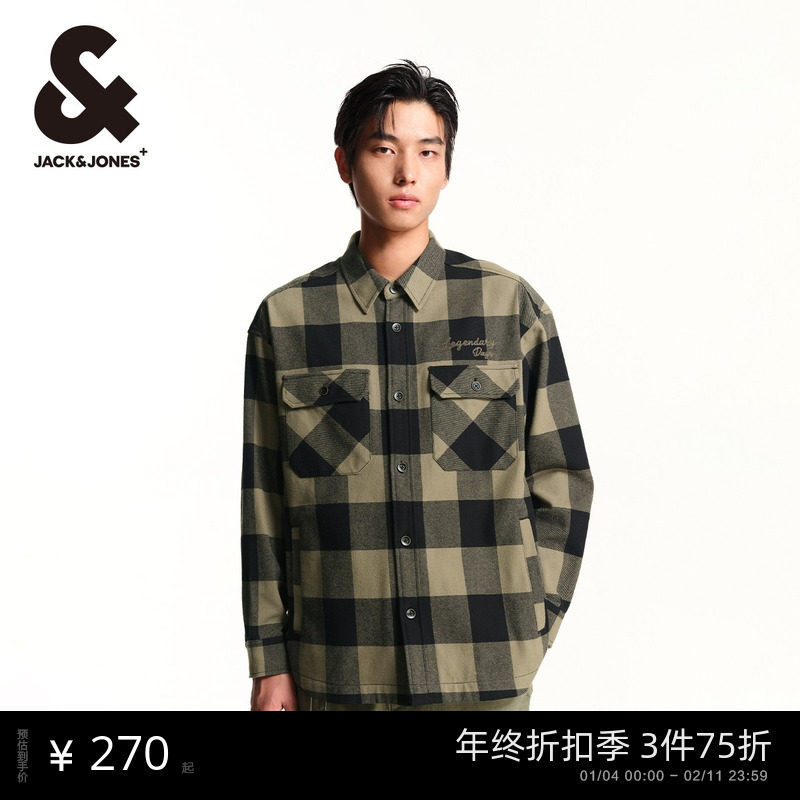 杰克琼斯男装2025年秋季新款Oversized格纹字母刺绣潮流百搭衬衫