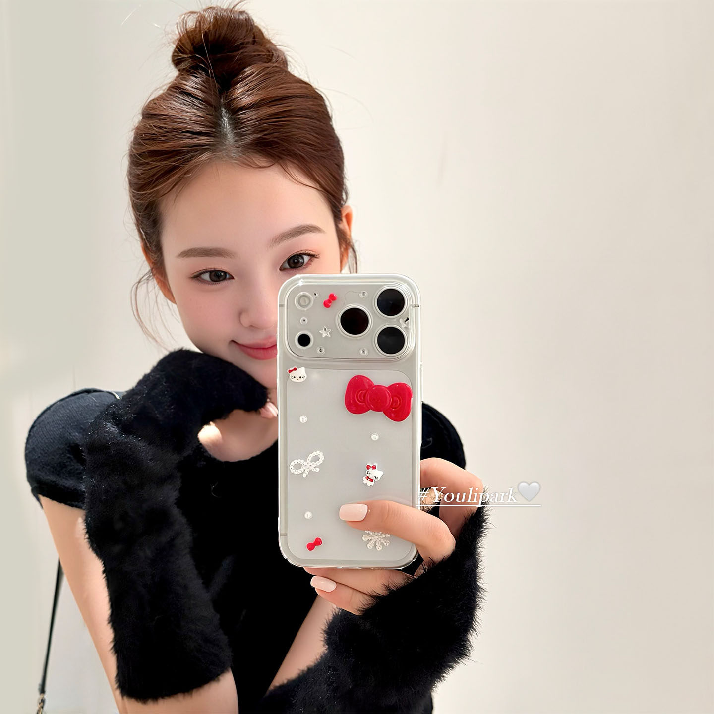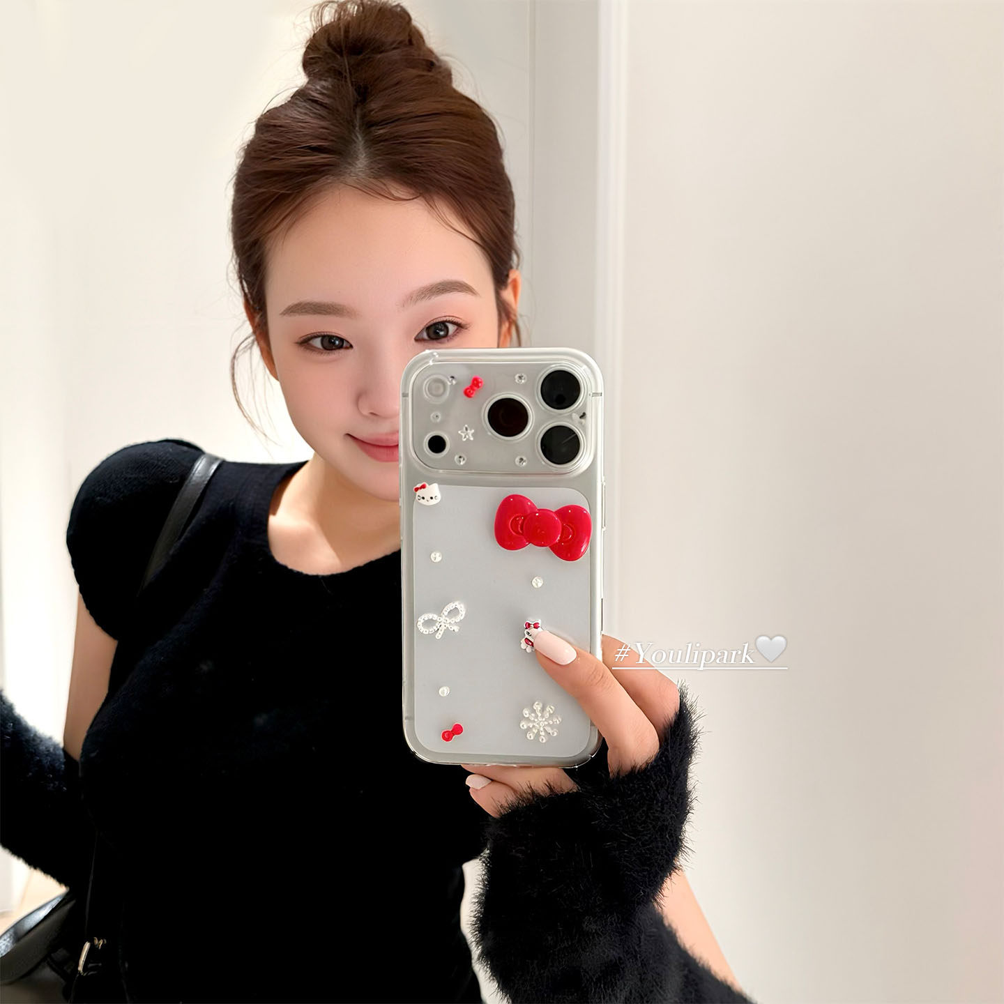 由里公园ins韩系立体新年红蝴蝶结雪花猫咪17适用17pro苹果17ProMax手机壳iPhone16全包14新款16Promax保护套
