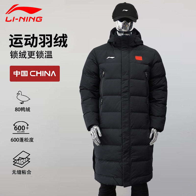 李宁运动羽绒服男款中长款冬季新款国标鸭绒旗帜连帽保暖爸爸