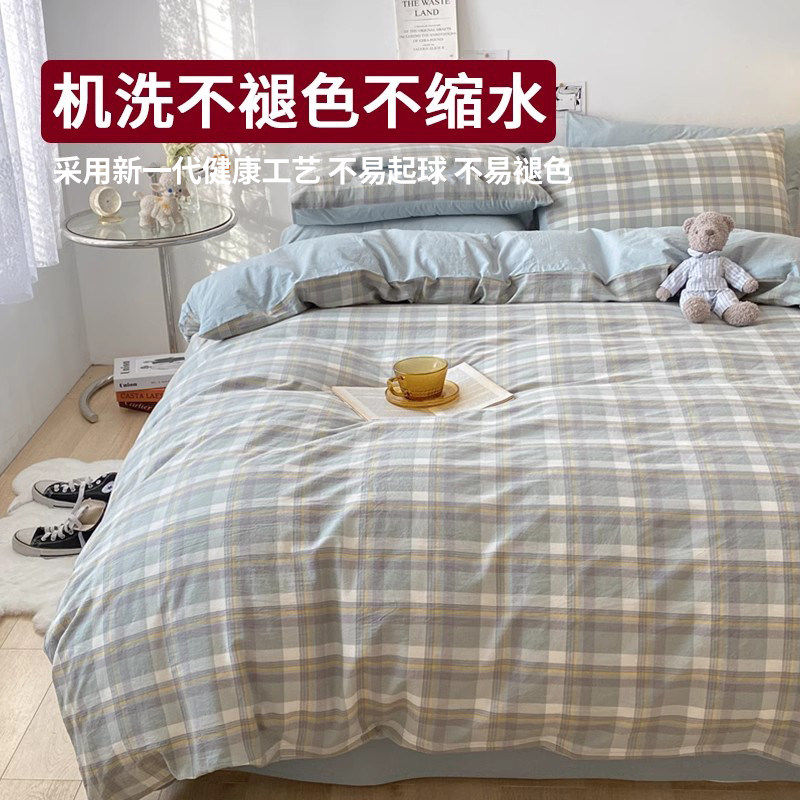 ins风水洗棉被套单件亲肤简约纯色被罩150x200非全棉纯棉冰丝床单