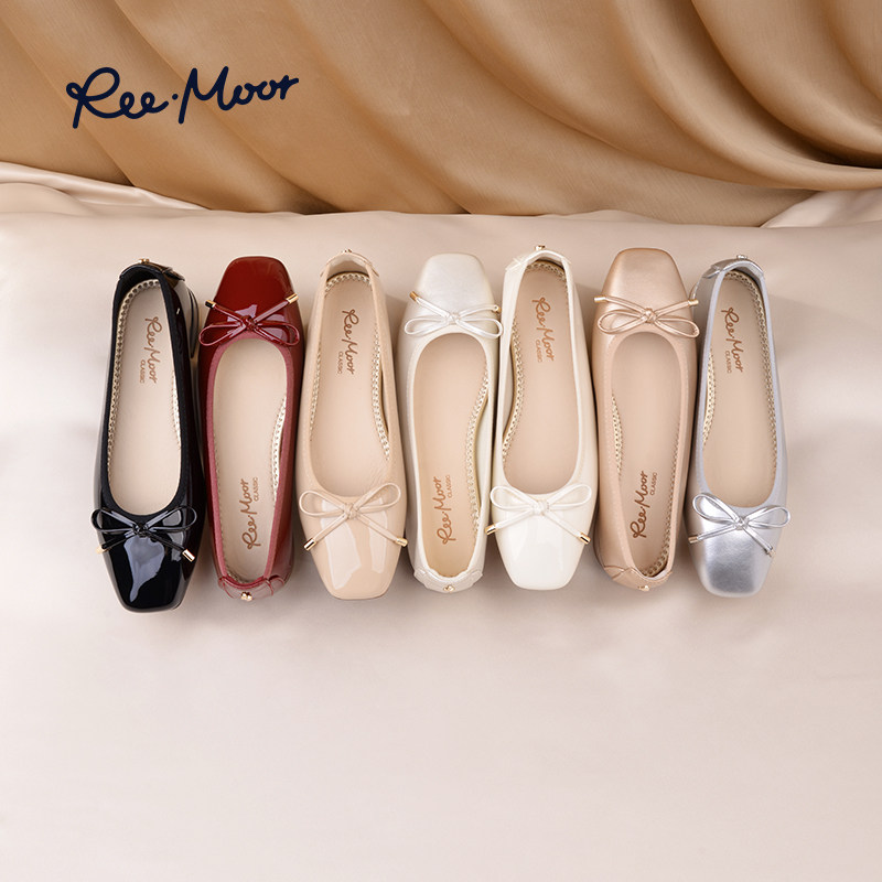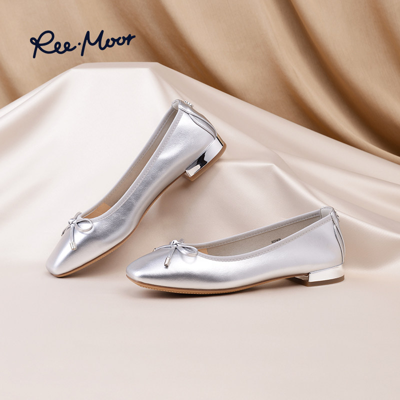 REEMOOR睿慕2025年秋新款舒适软底浅口单鞋方头粗跟增高通勤女鞋