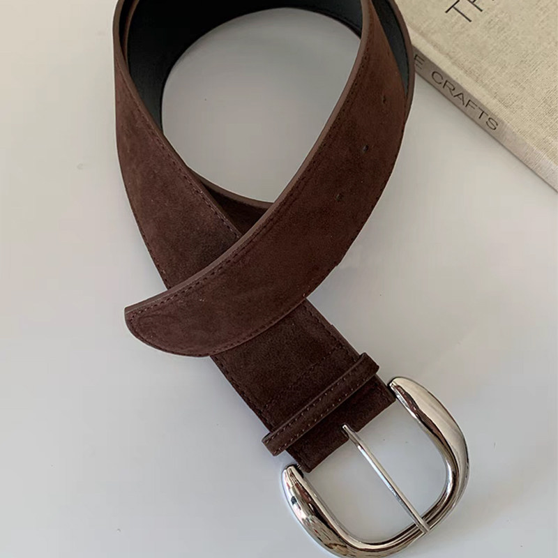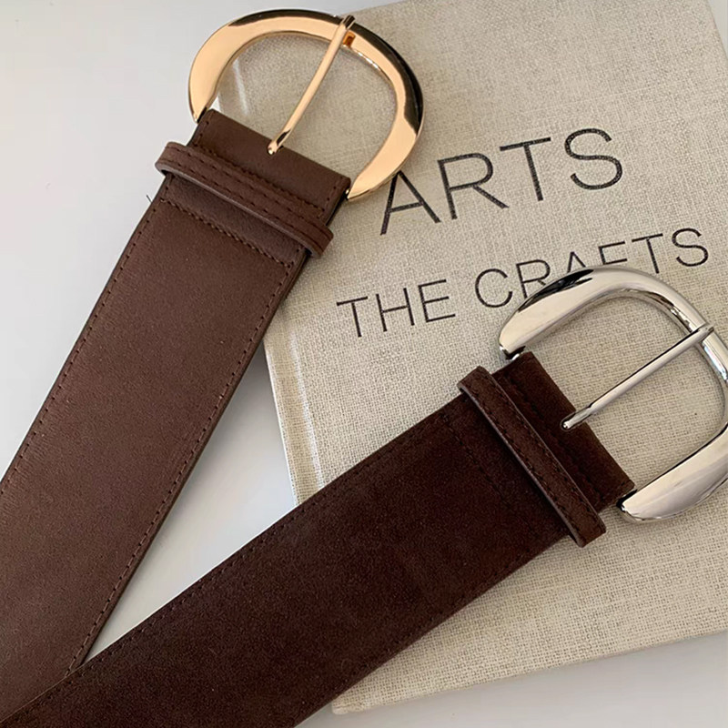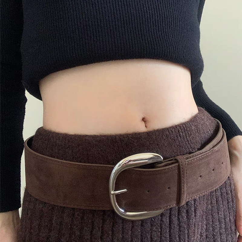 棕色麂皮韩版辣妹宽腰带女2025新款复古高级时尚短裙配饰皮带裤带