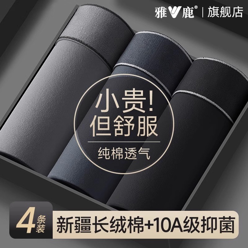 雅鹿男士内裤纯棉正品2025新款正品全棉透气短裤头衩男生中腰礼盒