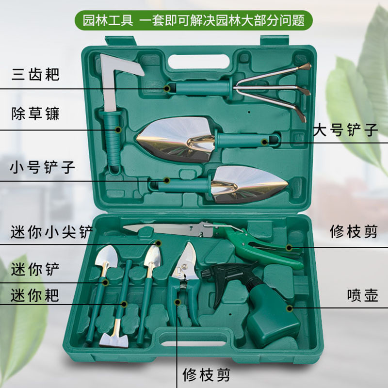 现货不锈钢十件套园艺工具套装花园工具铲耙锹剪喷壶多用园林用品
