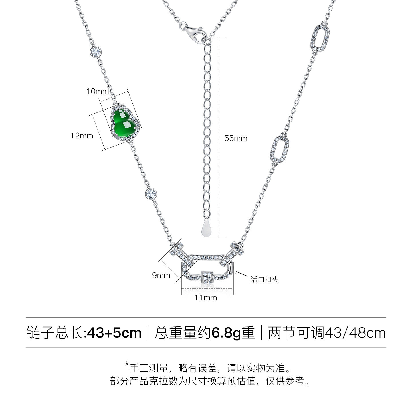 AILEQ 925银天然玉髓葫芦福禄双全链项链时尚珠宝明星同款饰品K10