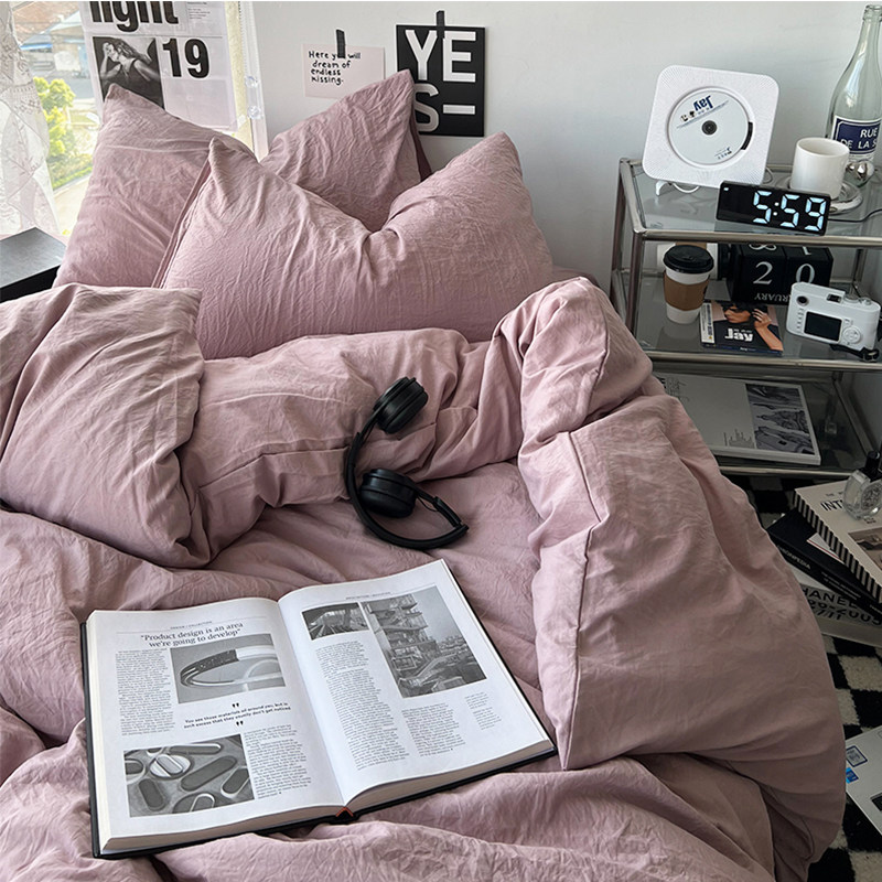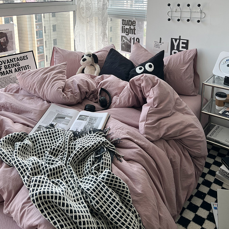 ins风纯色水洗棉床上四件套纯棉全棉床单床笠宿舍单人被套三件套4