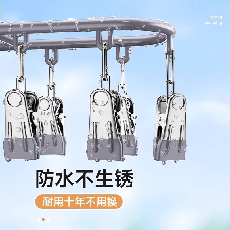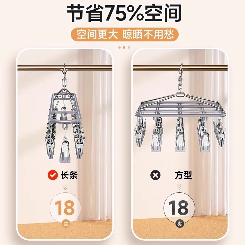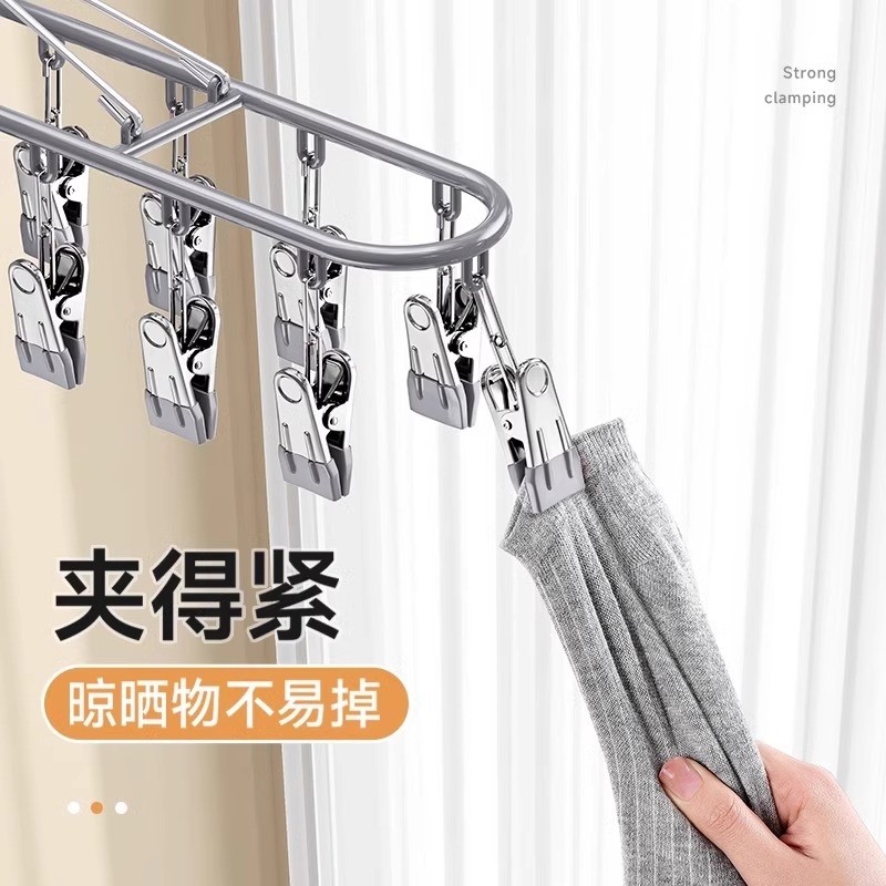 特粗晾袜子衣架多夹子防风家用不锈钢晾衣夹多功能挂钩晒袜子神器