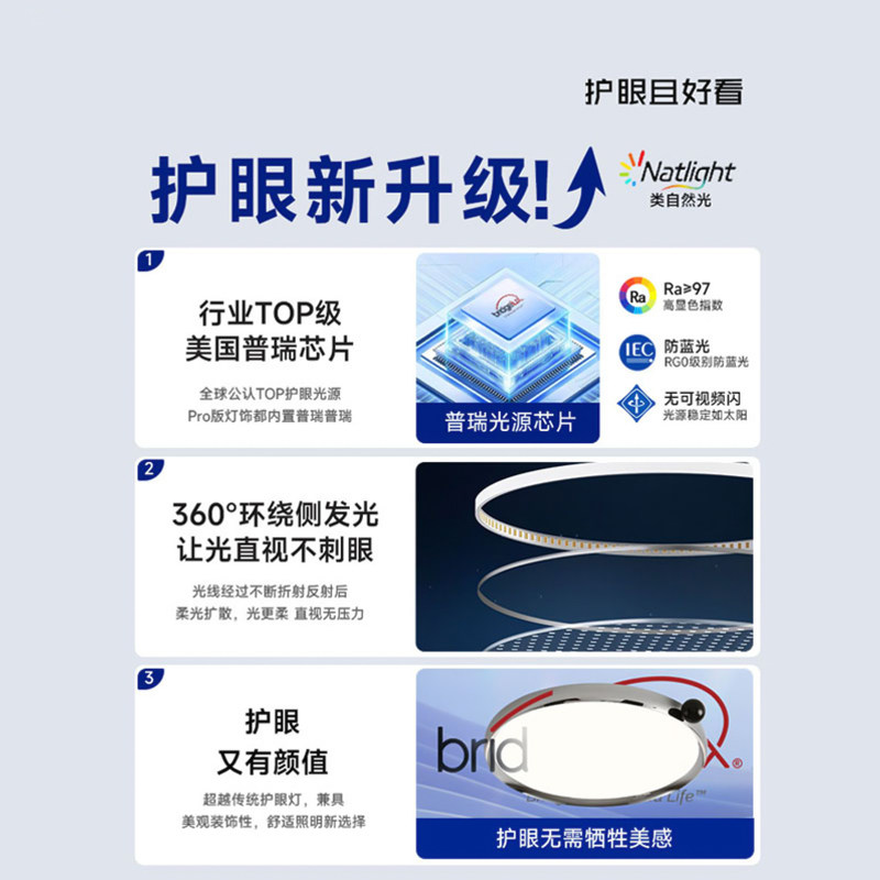 wow上下双光源卧室吸顶灯全光谱护眼高亮智能母婴护眼书房吸顶灯