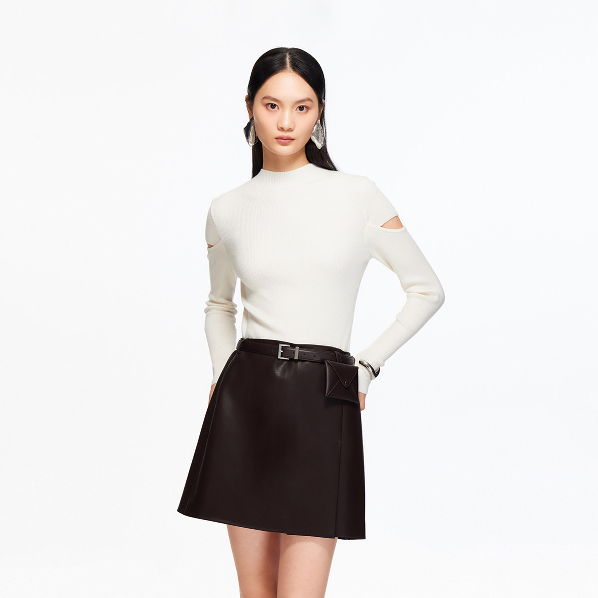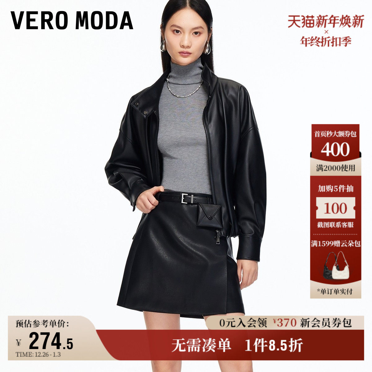 Vero Moda奥莱半身裙女2025秋冬新款含腰带腰包PU短裙时髦百搭