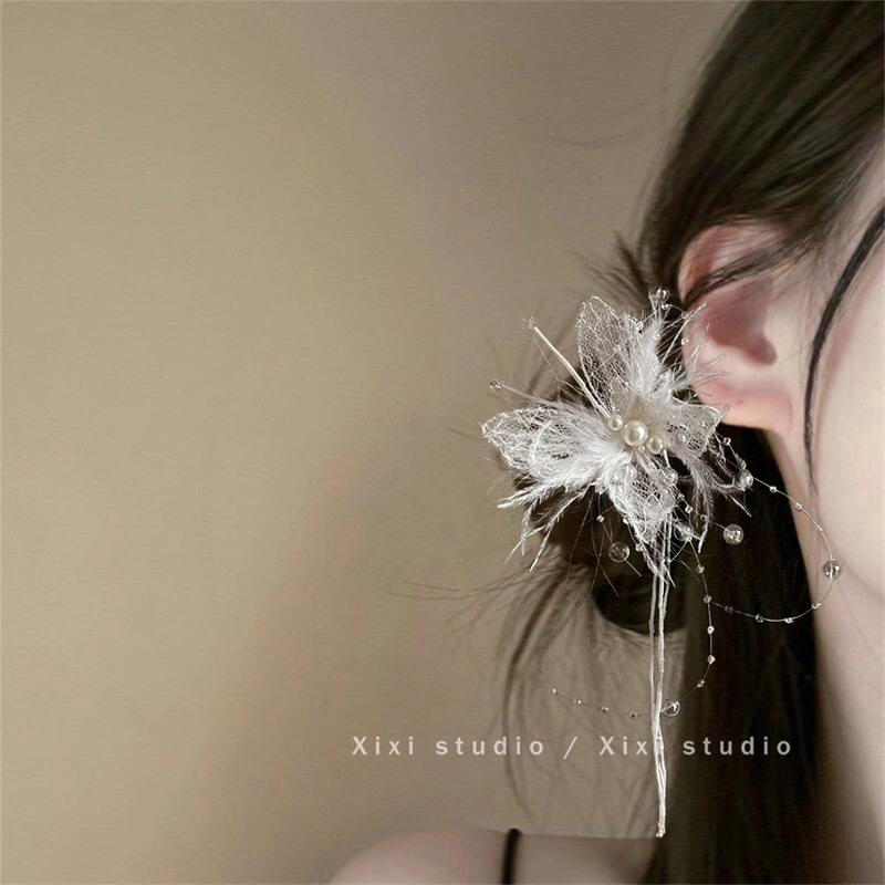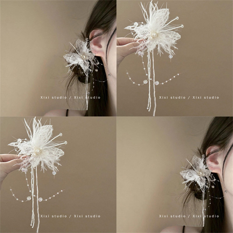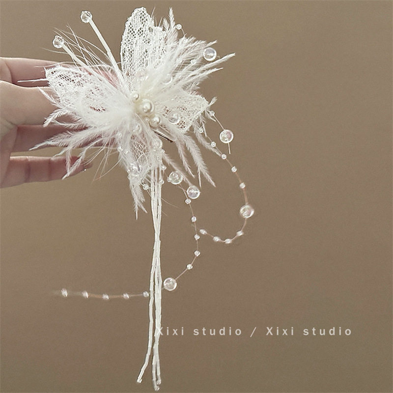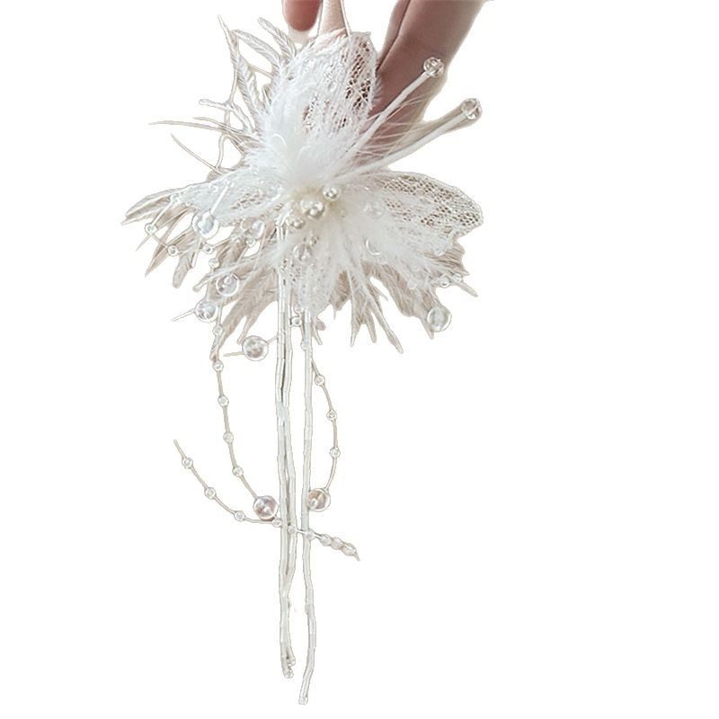 2025新款超仙新娘羽毛蝴蝶流苏发夹简约优雅影楼写真婚纱礼服配饰