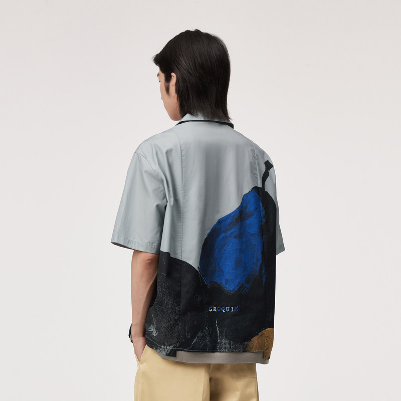 速写男装官方旗舰夏季新款度假衬衫男款翻领宽松休闲短袖印花衬衣