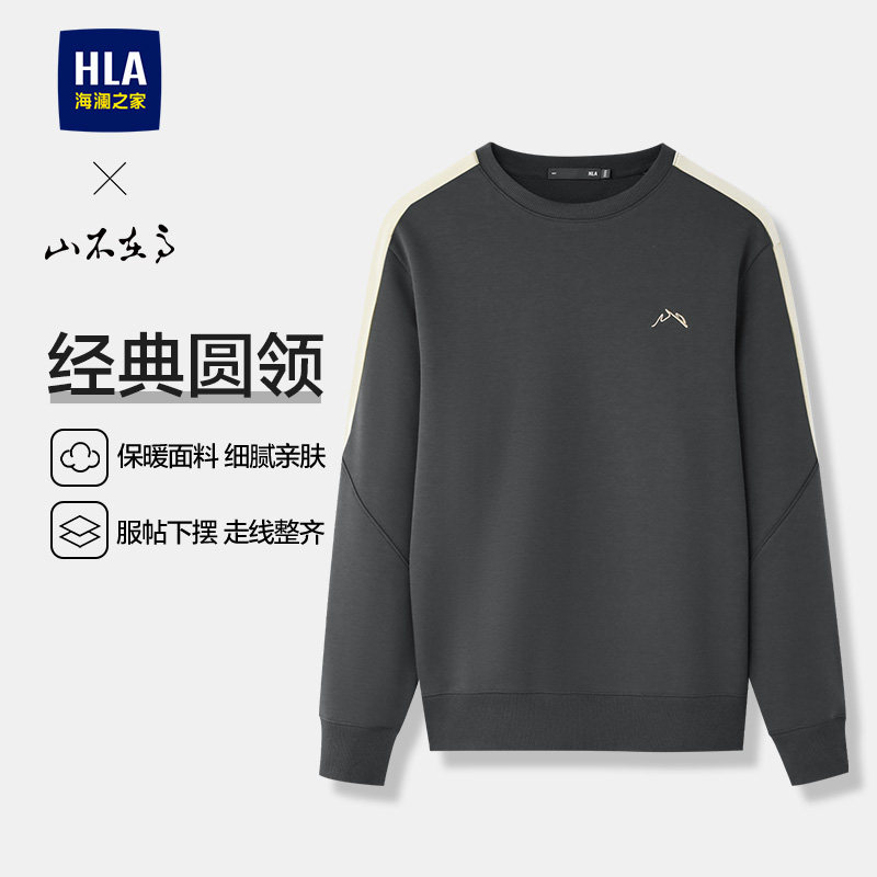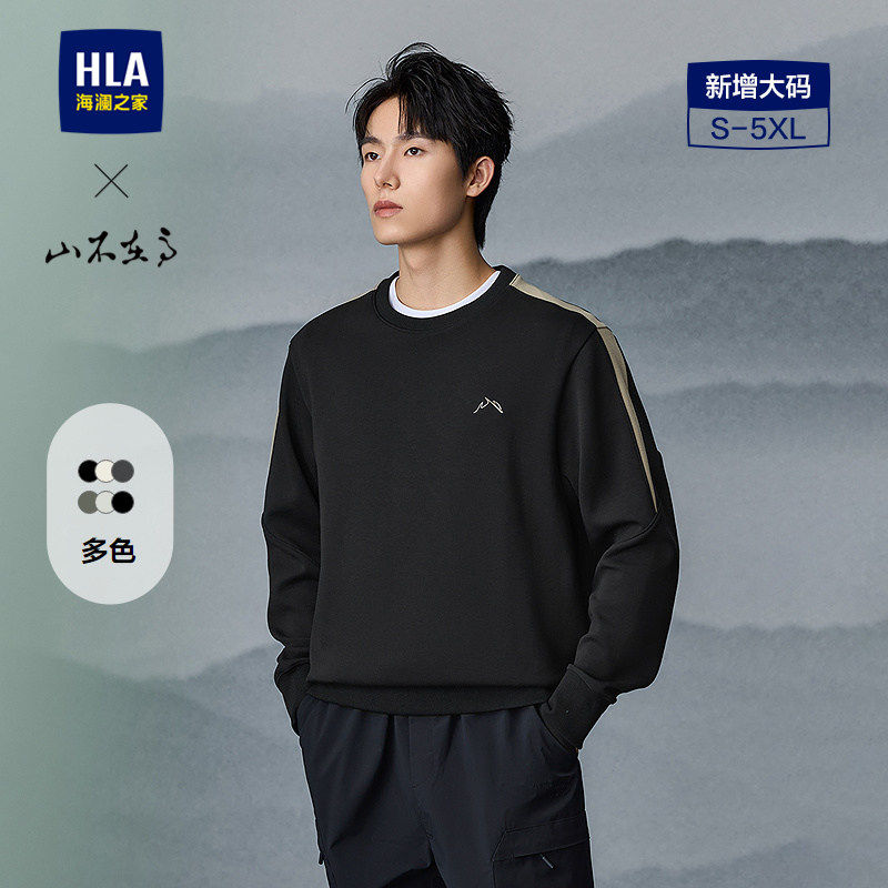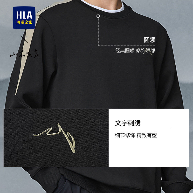 HLA/海澜之家山不在高卫衣26春季新款大码刺绣圆领撞色保暖长袖男