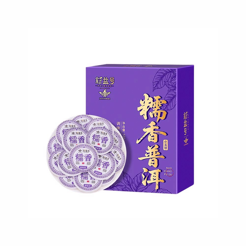 宫明茶叶 云南普洱茶熟茶糯米香小金砖普洱熟茶小圆饼320克礼盒装