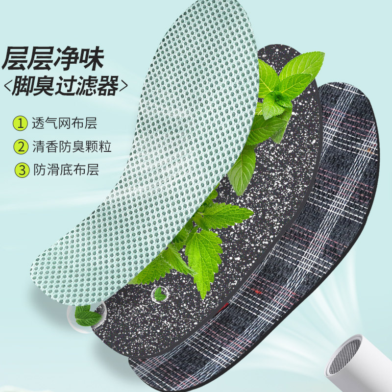 汗脚专用鞋垫男吸汗防臭透气舒适艾草留香女软弹防滑耐磨竹炭除臭