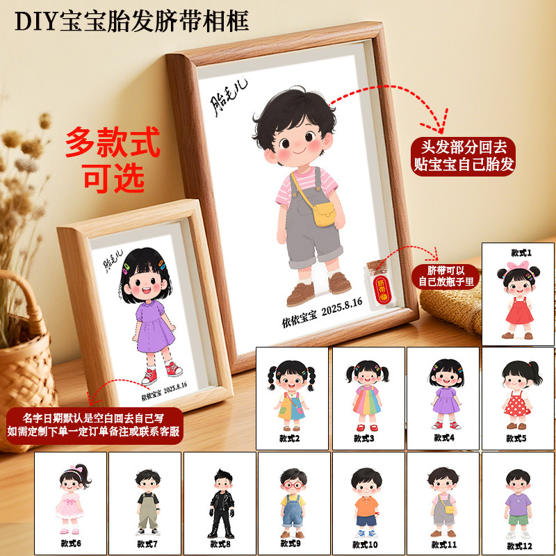 新生婴儿宝宝男女孩胎发收藏diy婴儿胎毛手工制作相框纪念品