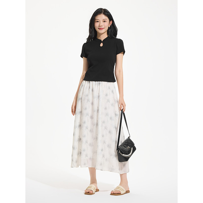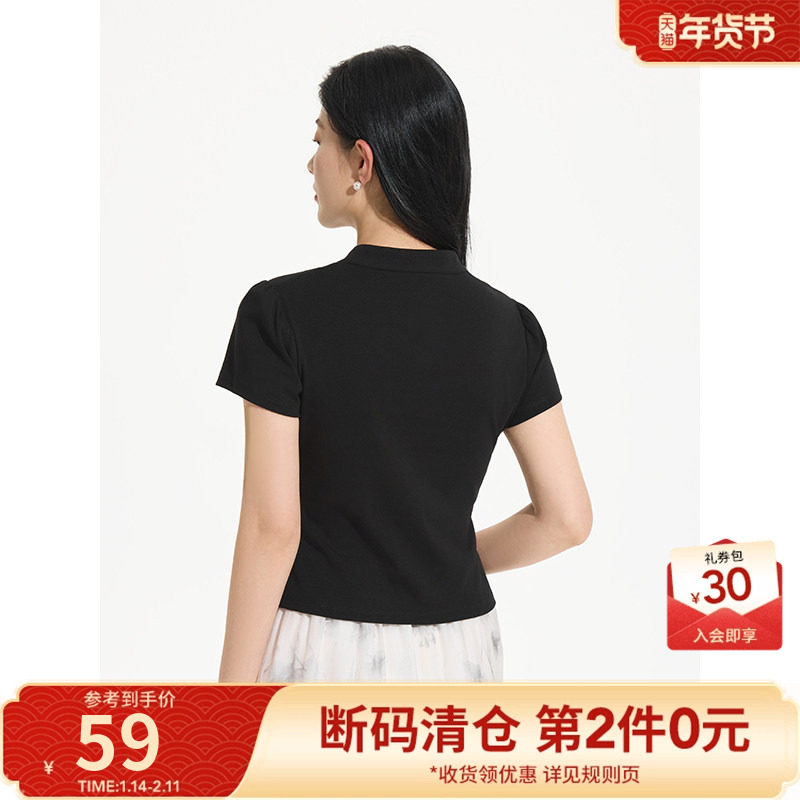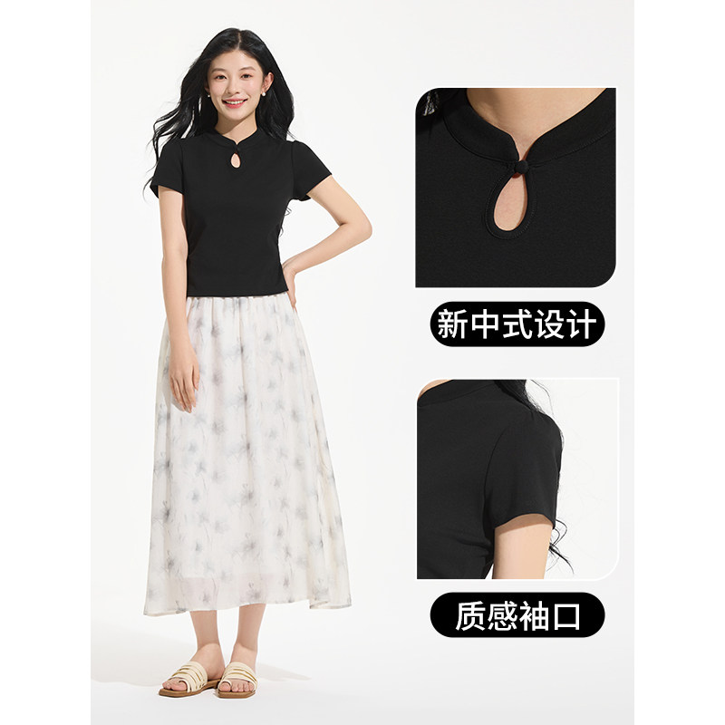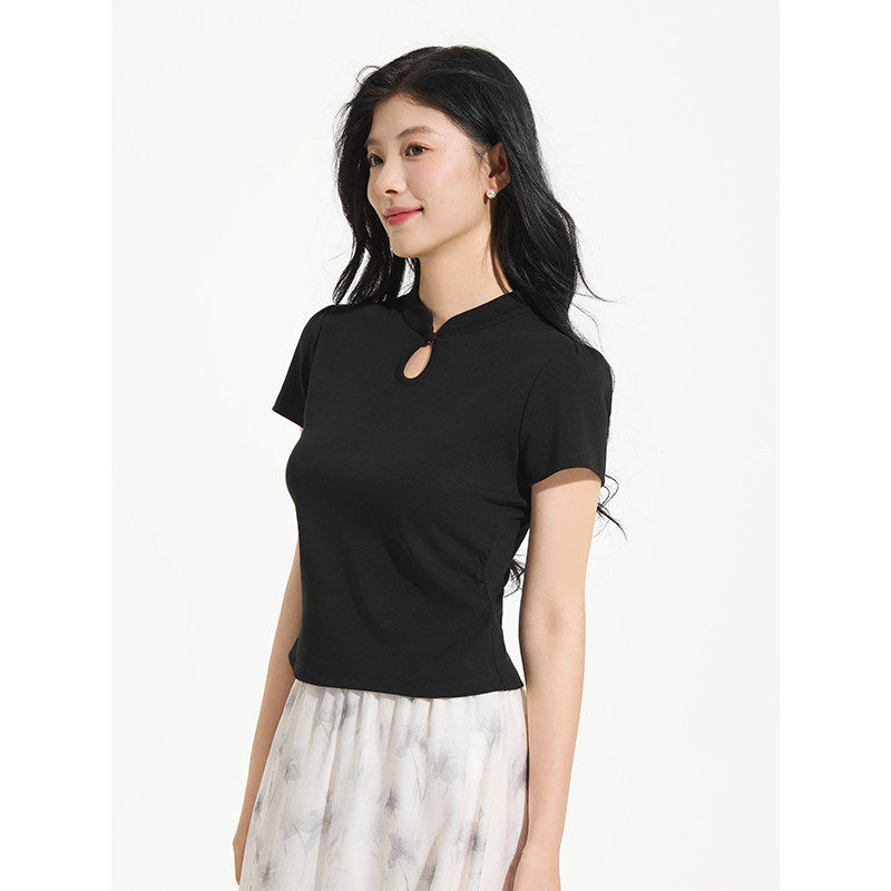 女士短T热风2025年夏季新款女士新中式短袖黑色显瘦百搭T恤上衣女