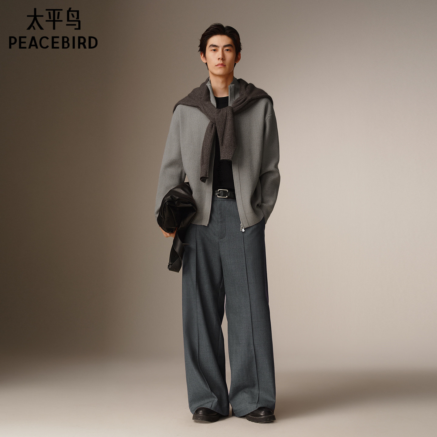【商场同款】太平鸟男装 休闲毛衫竖条肌理休闲宽松毛衣B1EAF4421